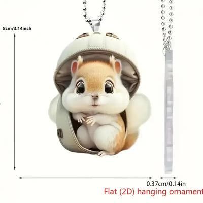 かわいいリス 後部座席ミラー ペンダント 車内装飾 車用インテリア 後部座席ミラー 装飾品 (平面 2D)