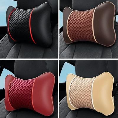 レザー ニット 車用枕 ヘッドレスト ネックレスト クッション サポート シート アクセサリー 車 ブラック 安全枕 ユニバーサル デコレーション 車