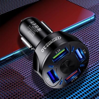 4ポート 車載充電器 QC3.0急速充電 LEDライト表示 シガーソケットUSB充電器 スマートフォン対応