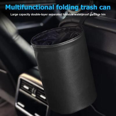 折りたたみ式 車用 ゴミ箱 ブラック レザー ポータブル 多機能 ハンギング 防水 収納袋 16cm 20cm