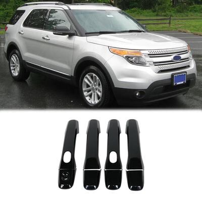 8個 ABS 光沢ブラック 外側ドアハンドルカバートリム フォード エクスプローラー 2011-2018 スマートホール