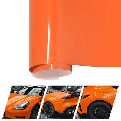 高光沢 オレンジ PETフィルム ラップ カバー ビニールフィルム ホイル ステッカー DIY 車用 エアリリース 自己粘着 デカール アクセサリー